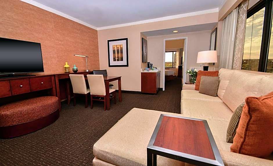 The suite offers air conditioning, a seating area, a safe deposit box and a TV with cable channels. The unit offers 1 bed.
