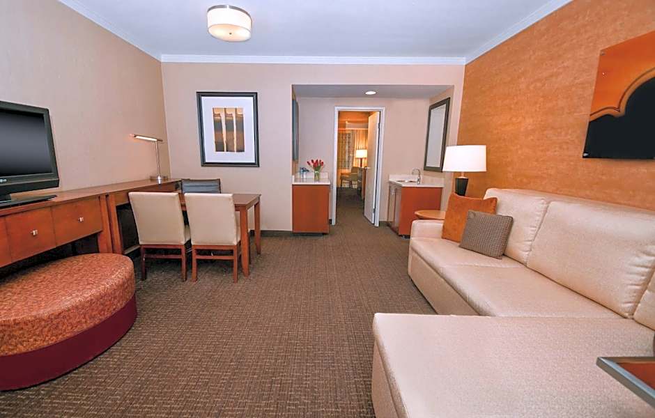 The suite offers air conditioning, a seating area, a safe deposit box and a TV with cable channels. The unit offers 1 bed.